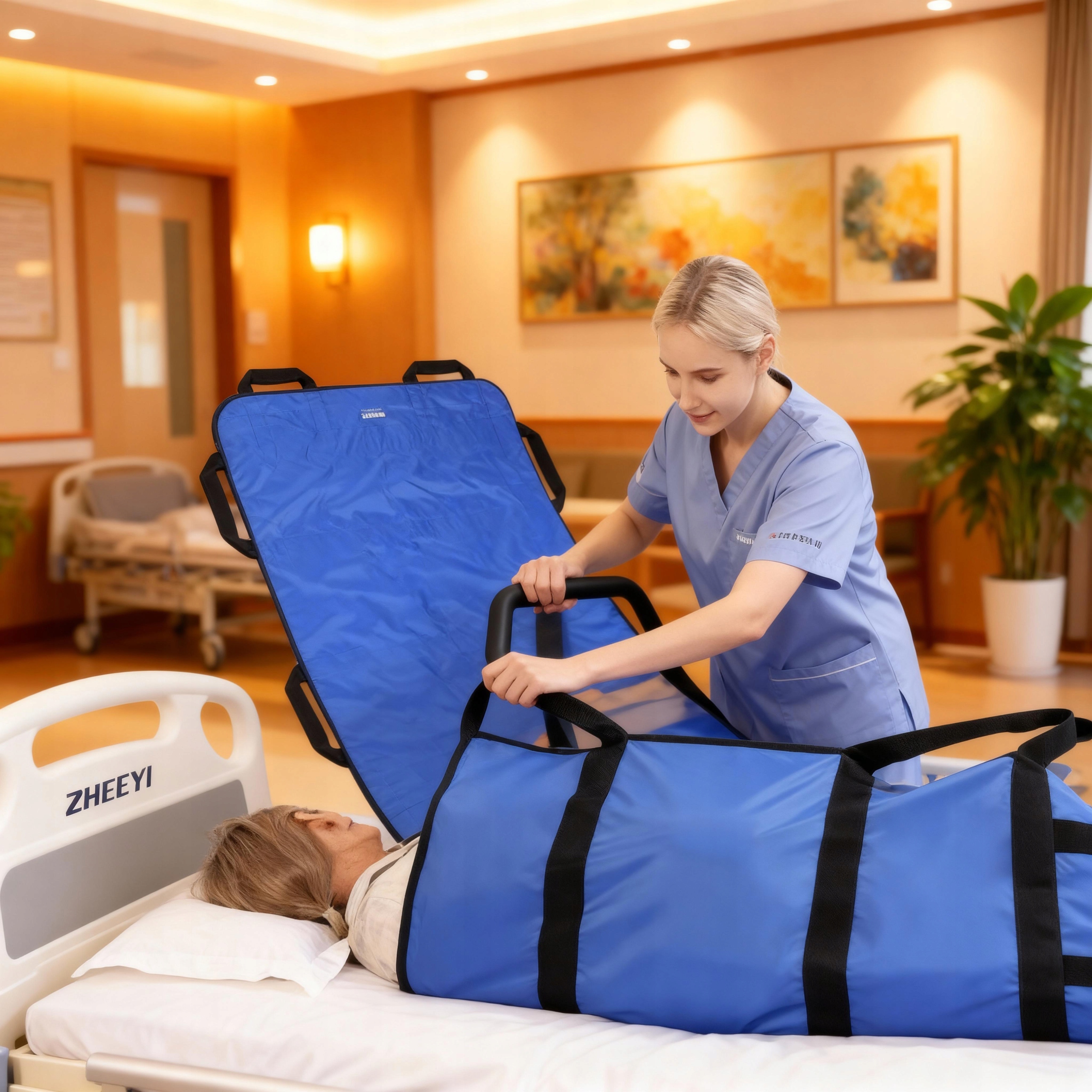 Umożliwia łatwe przesuwanie pacjenta między łóżkiem, fotelem a wózkiem, a także zmianę pozycji – np. obrót na bok – bez potrzeby podnoszenia ciała.