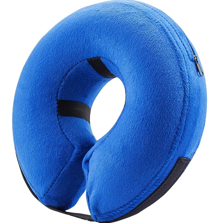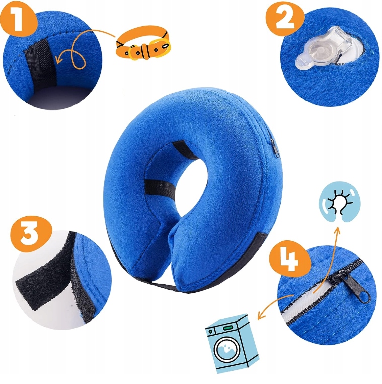 Nadmuchiwany kołnierz regeneracyjny w kształcie pączka jest wyjątkowo prosty w obsłudze. Wystarczy ścisnąć zaworek i nadmuchać go palcami. Po użyciu wystarczy spuścić powietrze i złożyć kołnierz – zajmuje wtedy bardzo mało miejsca i zmieści się nawet w szufladzie
