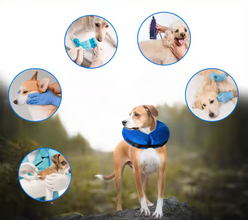 Nadmuchiwana obroża dla psa to wygodna i skuteczna alternatywa dla tradycyjnego stożka ochronnego. Po napompowaniu tworzy miękką, ale solidną barierę wokół szyi pupila, uniemożliwiając mu lizanie i gryzienie ran oraz miejsc pooperacyjnych. Dzięki niej Twój pies szybciej i spokojniej wraca do zdrowia