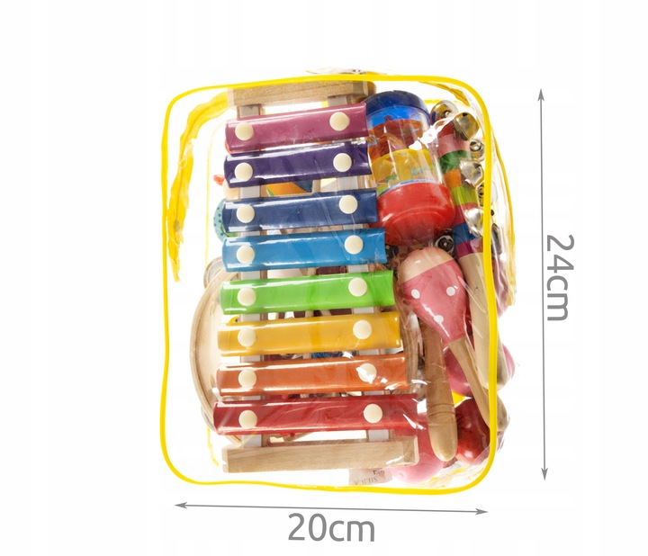 ZESTAW DREWNIANYCH INSTRUMENTÓW DLA DZIECI ZABAWKI EDUKACYJNE NA PREZENT
