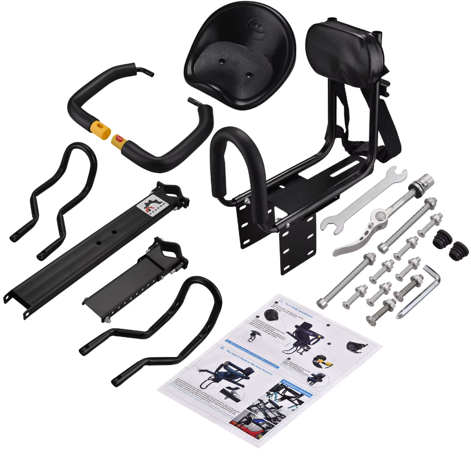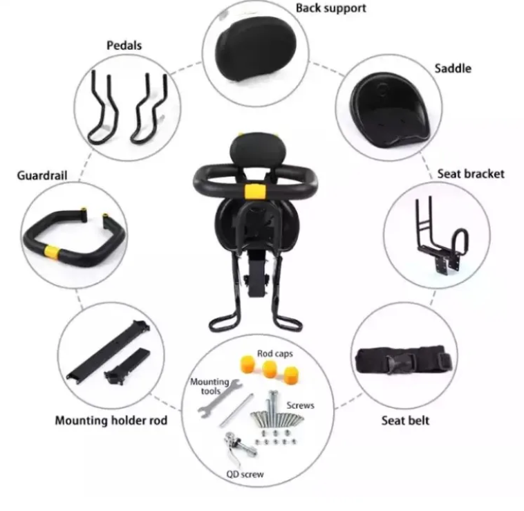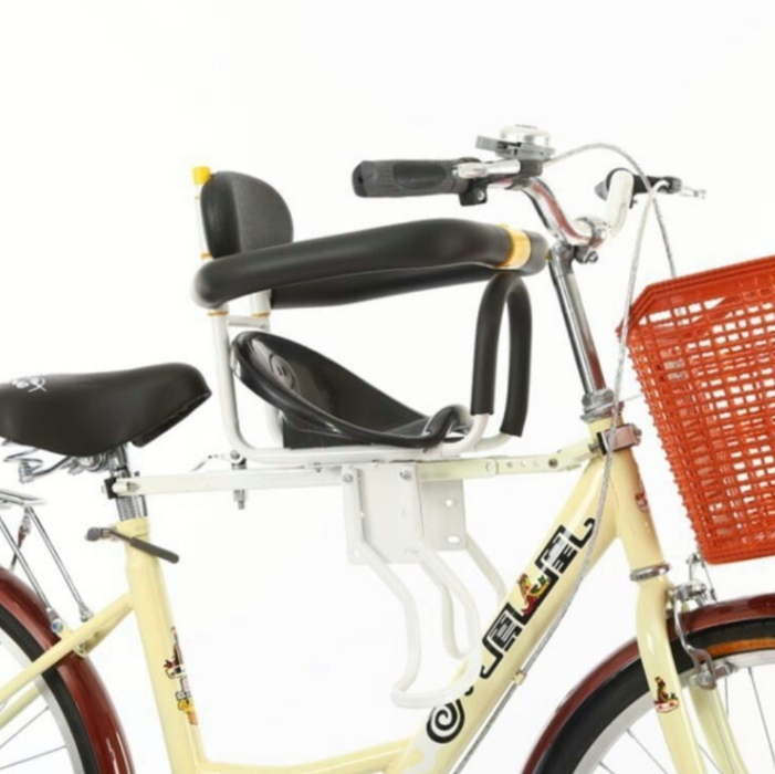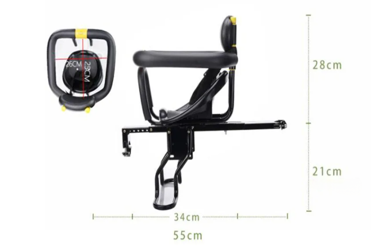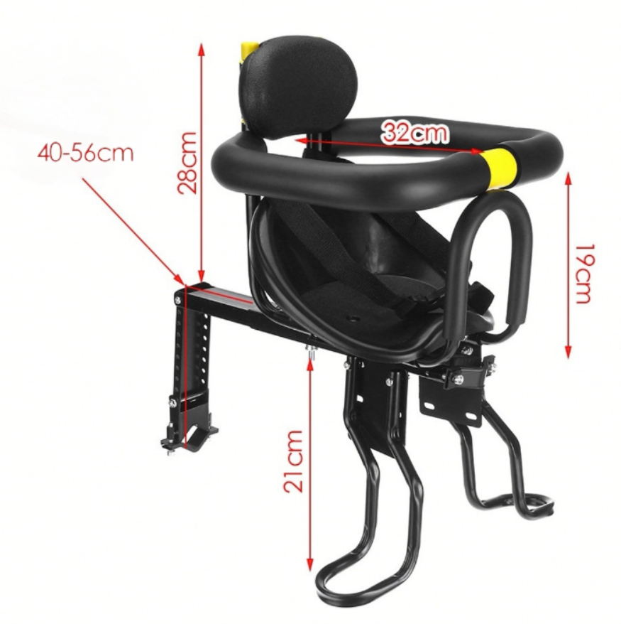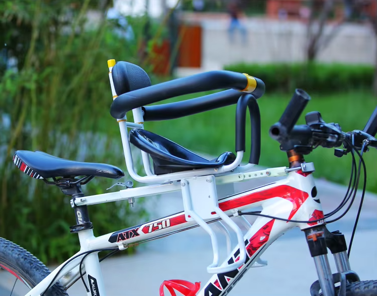 Wygodne i solidne siodełko dziecięce na rower, przeznaczone do montażu na przedniej ramie. Idealne dla wspólnych wycieczek – zapewnia bliskość, kontrolę i bezpieczeństwo podczas jazdy.