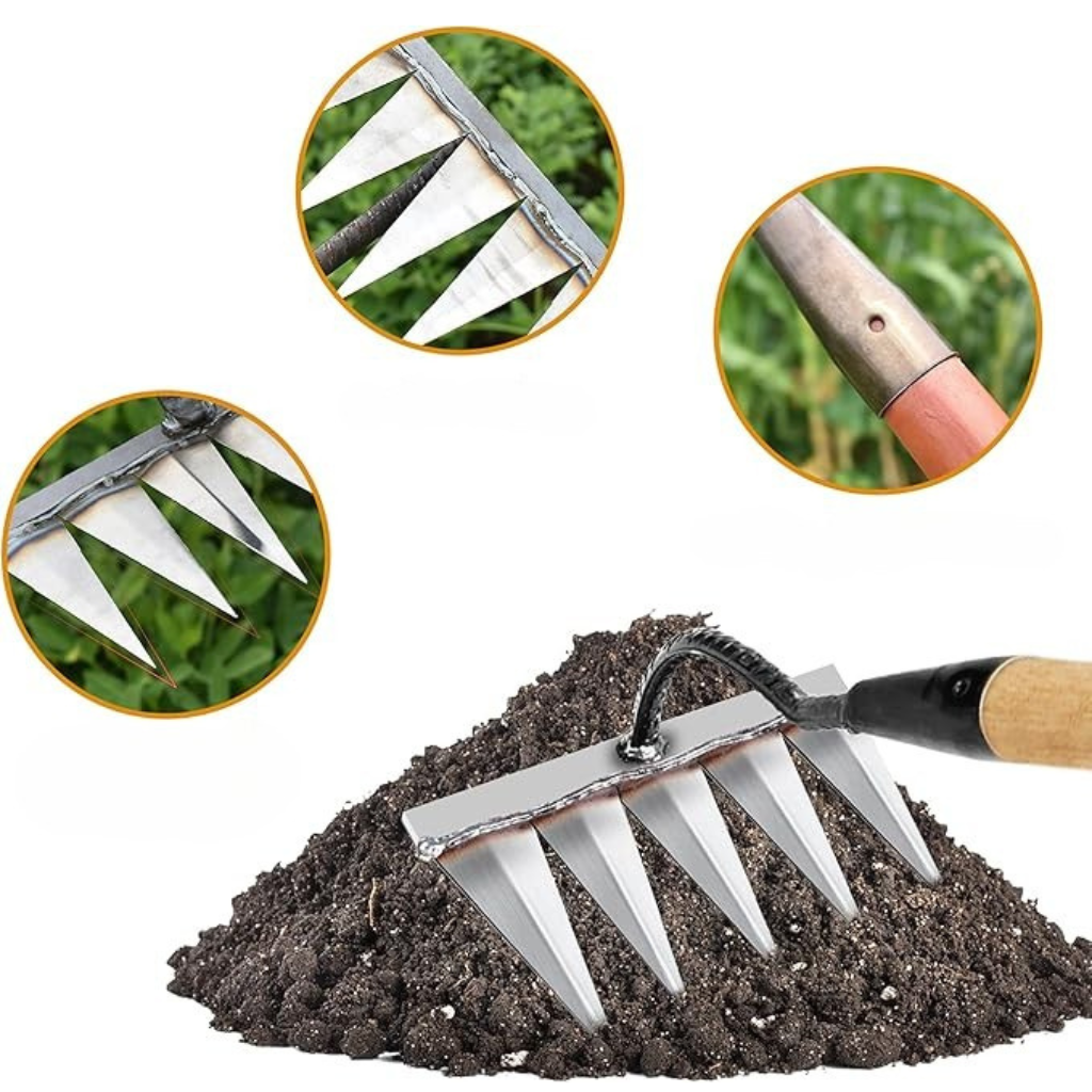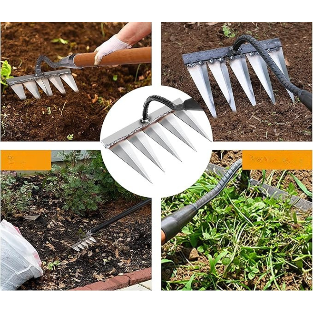 - Ostro zakończone zęby – idealne do usuwania chwastów u nasady,
