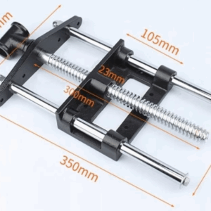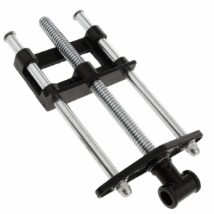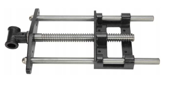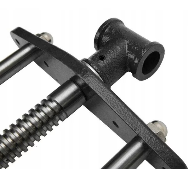 Solidna płyta z żeliwa ciągliwego montowana jest do spodu blatu. Dwie stalowe prowadnice oraz gruba śruba trapezowa umożliwiają płynną regulację i równomierne dociskanie. Pierwszą powierzchnię zaciskową stanowi krawędź stołu, a druga montowana jest na przedniej szczęce imadła.