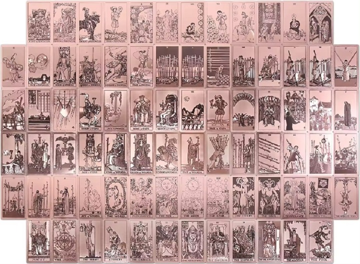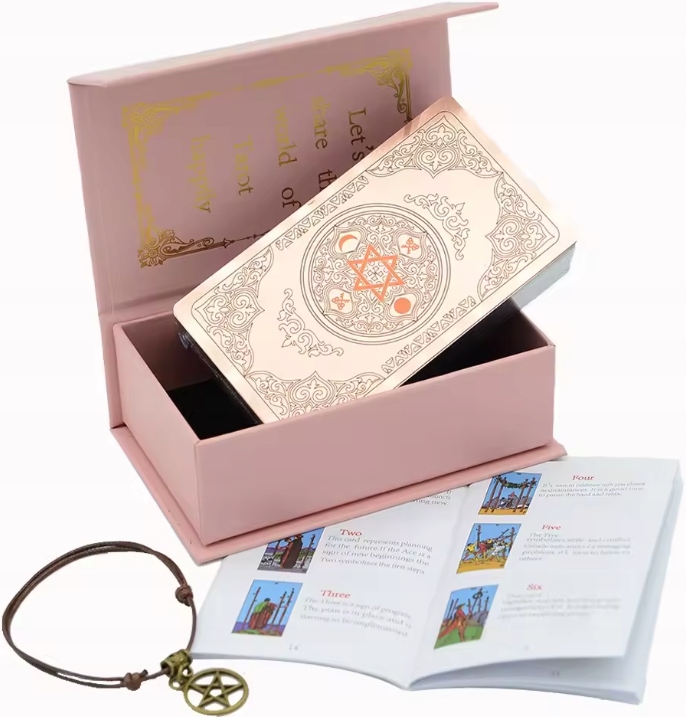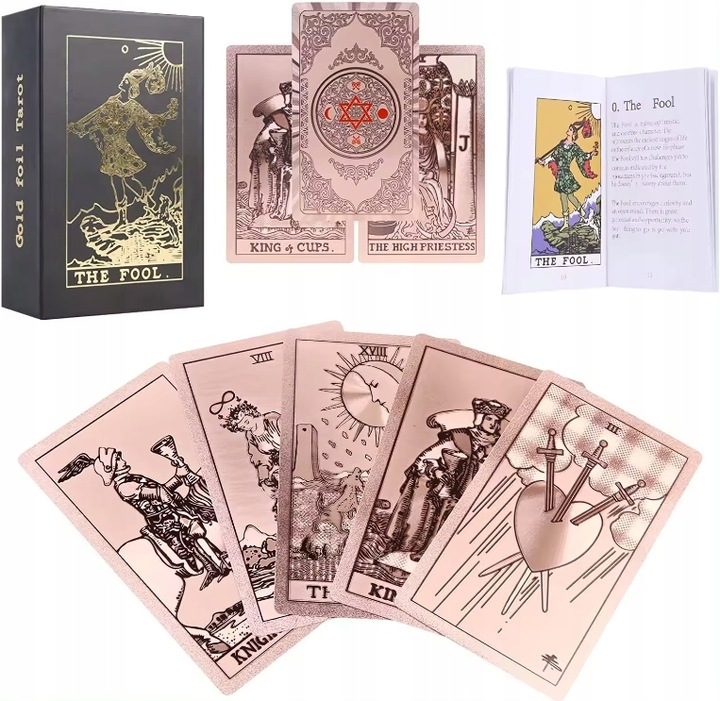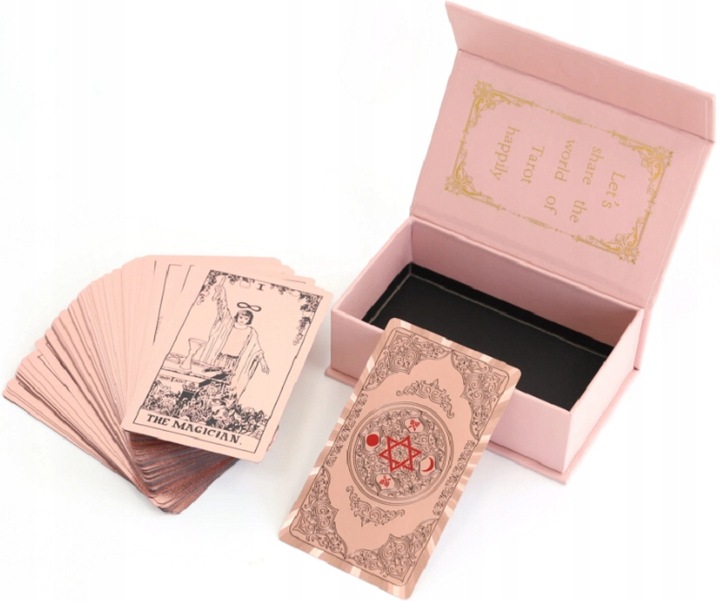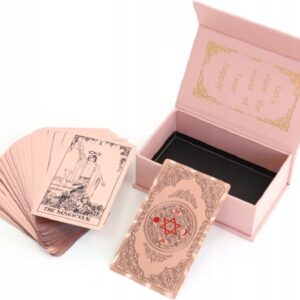 Nowe karty Tarota w kolorze różowego złota to doskonała propozycja dla miłośników sztuki ezoterycznej. Ta mistyczna talia kart łączy w sobie niezwykłą harmonię kolorów, podkreślając piękno oraz tajemniczość przekazu zawartego na poszczególnych kartach. Niezwykle starannie wykonane detale z motywami złota dodają luksusowego charakteru temu unikatowemu produktowi.
