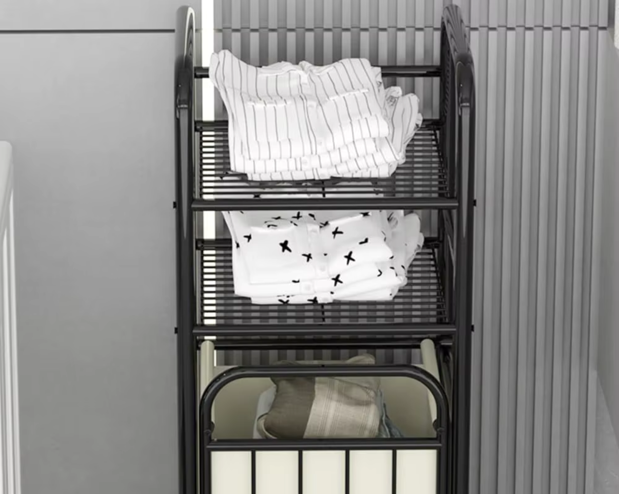 Proporcje kosza i półek zostały starannie zaprojektowane, by zapewnić jak największy komfort użytkowania i wygodę w przechowywaniu. Dzięki temu możesz łatwo posegregować ubrania, trzymać akcesoria w porządku i cieszyć się przestrzenią wolną od chaosu.
