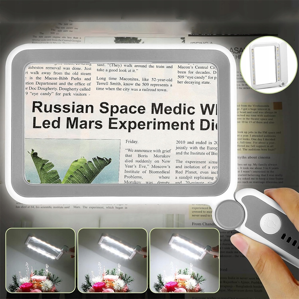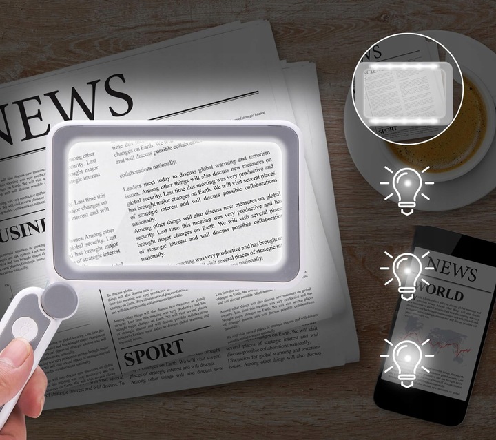 Dzięki dużej powierzchni soczewki i wbudowanemu oświetleniu LED, umożliwia wygodne i wyraźne czytanie książek, gazet czy ulotek.