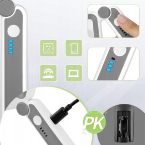 Ergonomiczny, składany uchwyt zapewnia komfort użytkowania i łatwe przechowywanie. Dzięki lekkiej konstrukcji i wbudowanemu oświetleniu idealnie sprawdzi się zarówno w domu, jak i w podróży.