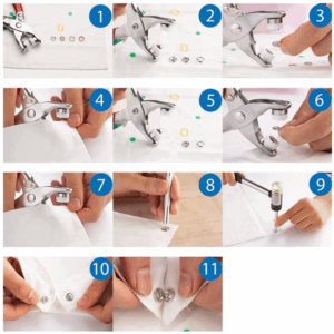 Napownica do oczek umożliwia precyzyjne mocowanie oczek w materiale.