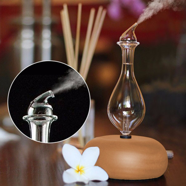 Nebulizator składa się z eleganckiej drewnianej podstawy oraz szklanej komory, na której znajduje się dysza rozprowadzająca. Obsługa urządzenia jest prosta i nie wymaga specjalnych umiejętności.