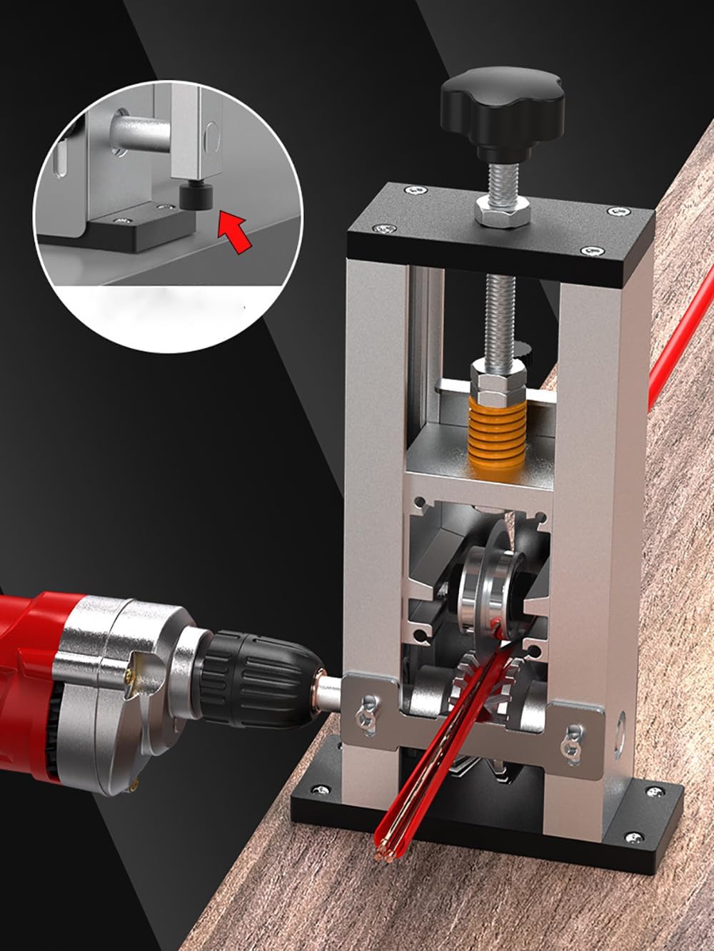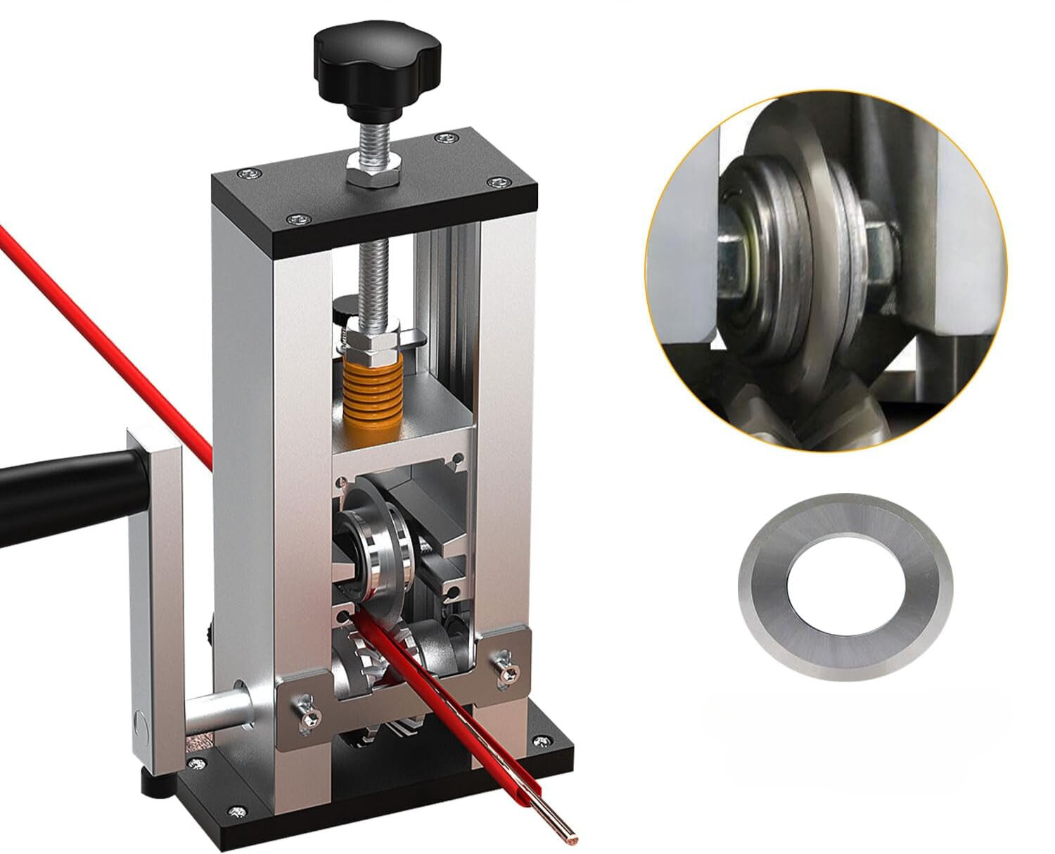 • Metalowe koło podające drut jest gładkie i stabilne, co sprawia, że usuwanie izolacji staje się prostsze i bardziej efektywne.