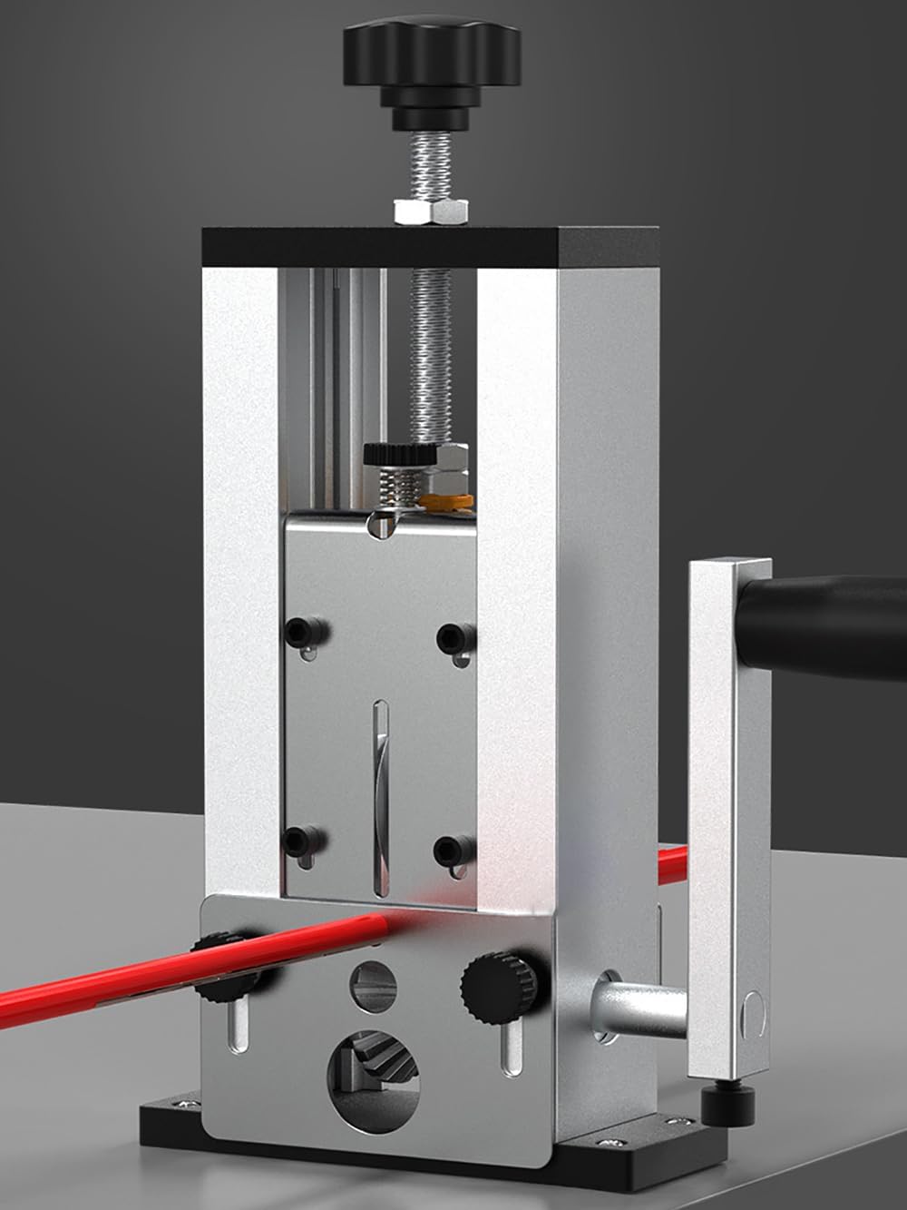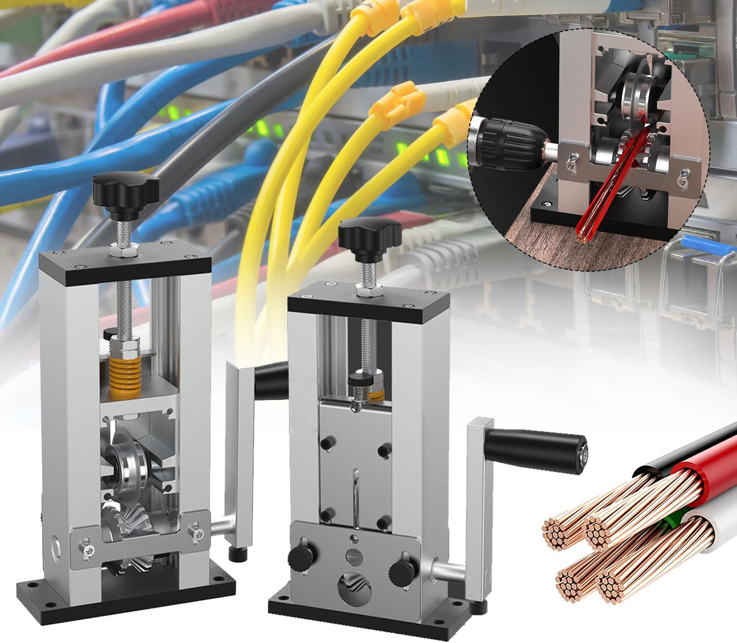 Solidne, wydajne narzędzie o wysokiej precyzji. Wykorzystuje metalowe koło podające drut do płynnego usuwania izolacji, z możliwością regulacji grubości warstwy od 1 do 25 mm.