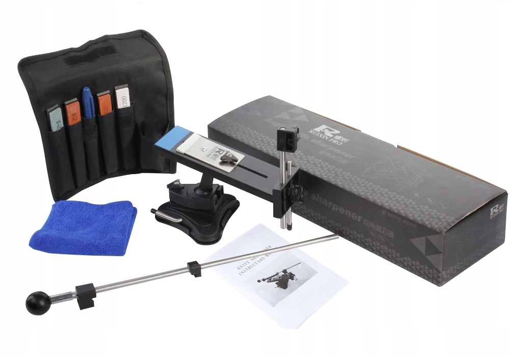 Zawiera kamienne ostrzałki o różnej ziarnistości, dzięki którym możemy uzyskać idealną powierzchnię ostrza.