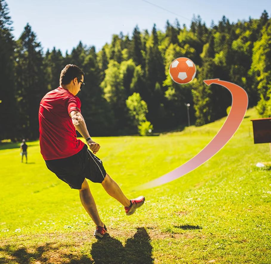 ✅ Trwała i wszechstronna – Zakrzywiona piłka nożna wykonana z wytrzymałej gumy EVA gwarantuje wysoką odporność na intensywną grę na różnych nawierzchniach: trawie, piasku czy betonie. To uniwersalna piłka, która sprawdzi się w każdych warunkach.