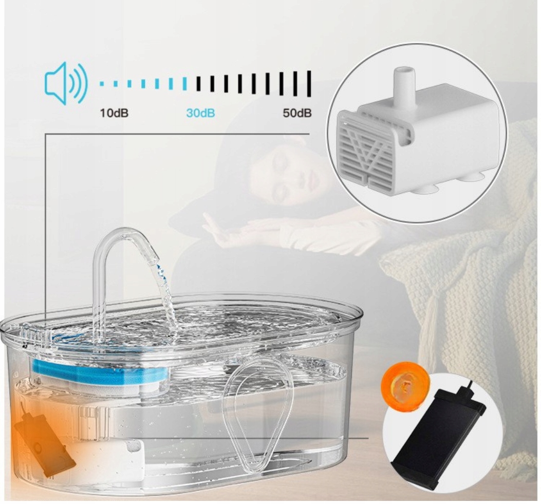 Nowoczesna pompa pracuje ciszej niż szept, dzięki czemu fontanna nie zakłóca snu ani domowej ciszy – nawet w nocy.
