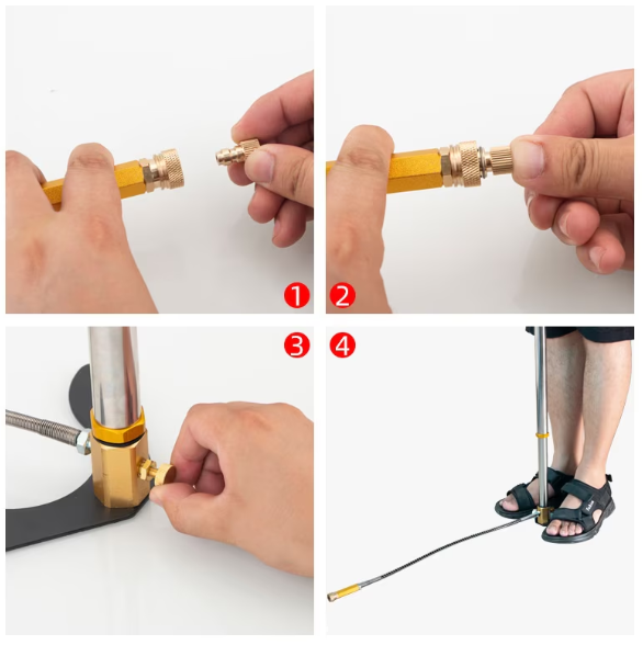 Miedziane złącze żeńskie uszczelnione polifluorenem umożliwia osiągnięcie ciśnienia do 4500 psi. Elastyczny wąż z mikrootworami zapewnia nie tylko szczelność, ale także bezpieczeństwo i najwyższą jakość.