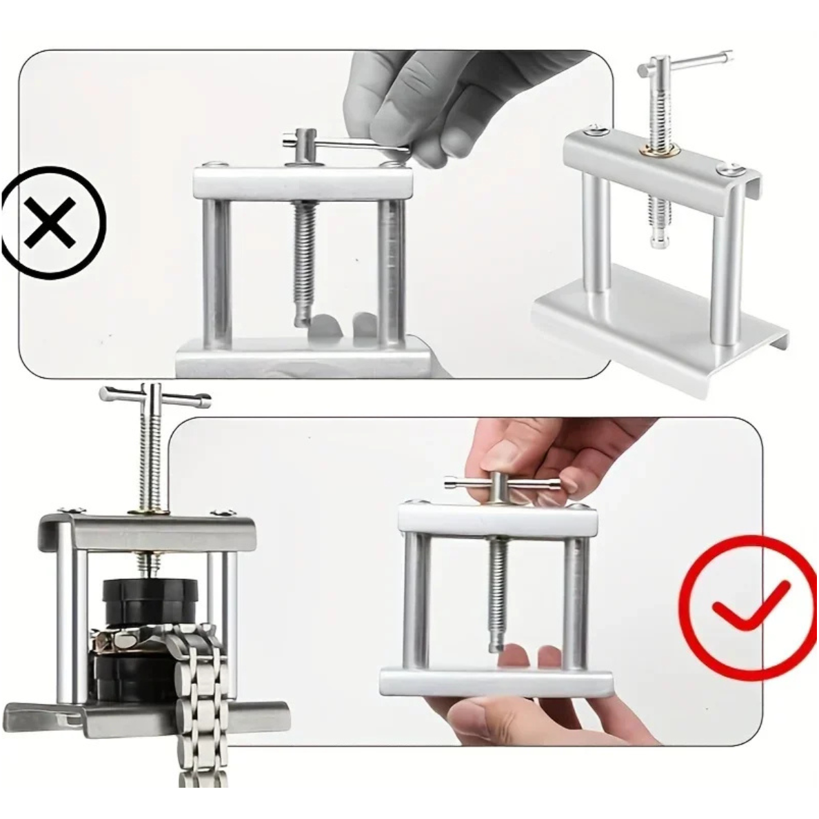 ✅ Profesjonalna prasa zegarmistrzowska to niezastąpione narzędzie dla każdego pasjonata zegarków, zarówno amatora, jak i profesjonalisty. Dzięki niej w łatwy i bezpieczny sposób zamkniesz dekiel zegarka bez ryzyka uszkodzenia koperty czy szkiełka.