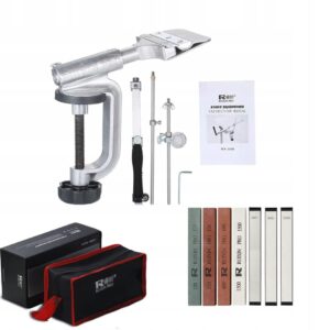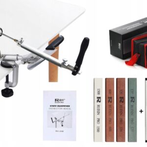 Zestaw ostrzałek do precyzyjnego ostrzenia. Doskonale sprawdza się w zastosowaniach kuchennych. Zawiera kamienne ostrzałki o różnej ziarnistości, dzięki którym możemy uzyskać idealną powierzchnię ostrza.