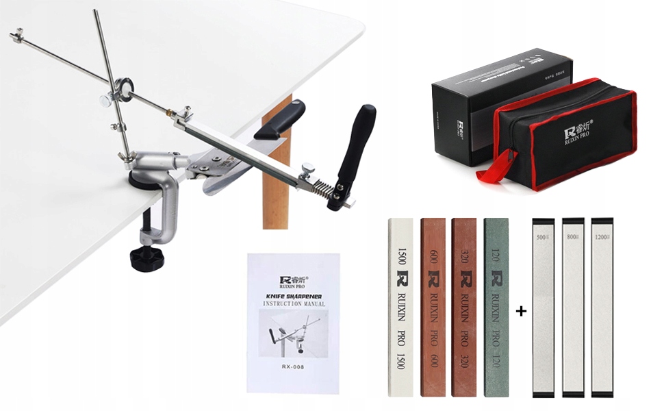 Dodatkowo w zestawie 3 osełki diamentowe o gradiacji: 500, 800,1200