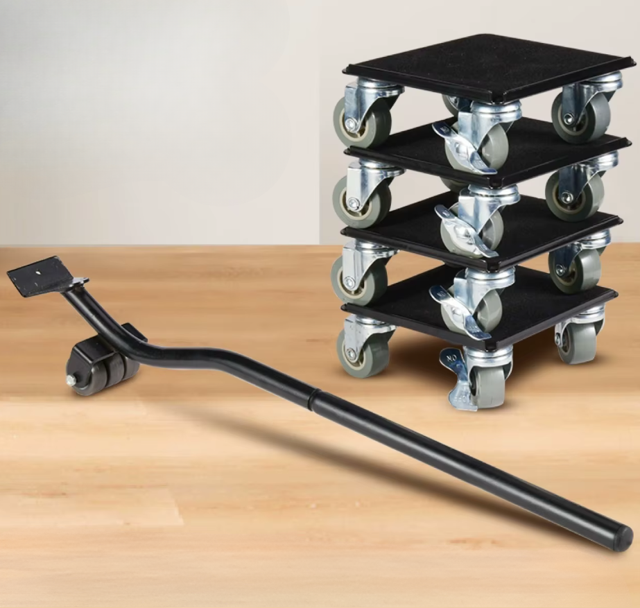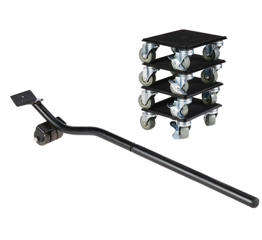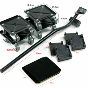 ZESTAW ROLKI DO TRANSPORTU PRZESUWANIA MEBLI HAMULCE 300KG DŁUGA RĄCZKA Długość 62 cm