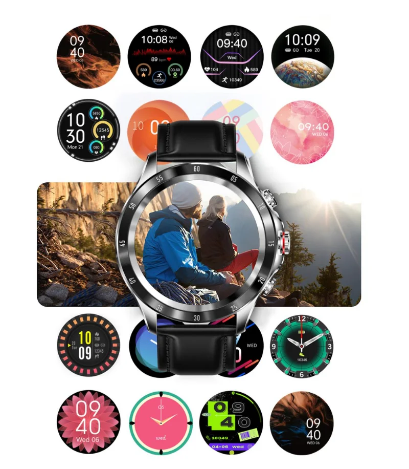 Smartwatch posiada wysokiej jakości ekran dotykowy 1.32″ o wysokiej rozdzielczości HD 390*390, który jest czytelny zarówno w pełnym nasłonecznieniu, jak i w ciemności.