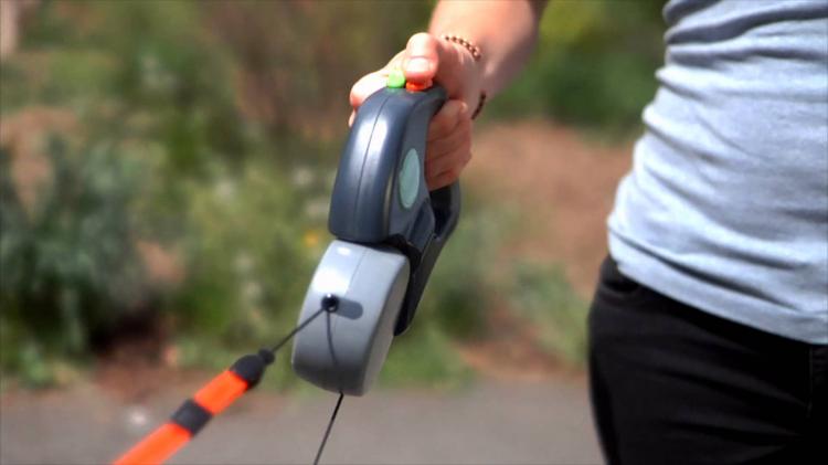 2. Blokada: Posiada funkcję blokady, która pozwala na utrzymanie ustalonej długości smyczy. To bardzo praktyczne, szczególnie podczas nauki psa chodzenia na smyczy.