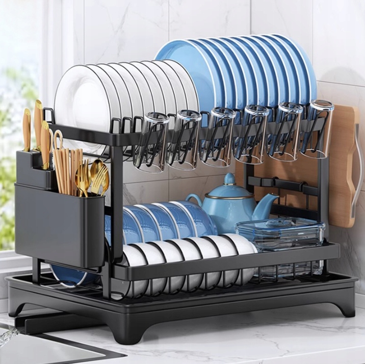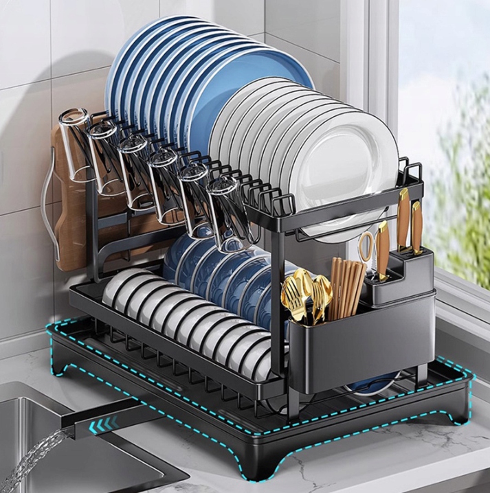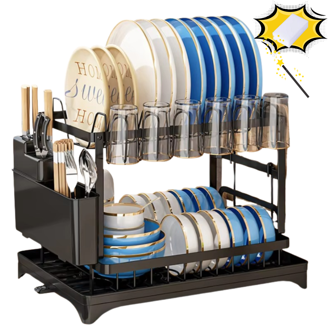 SUSZARKA DO NACZYŃ DWUPOZIOMOWA Z ODPŁYWEM I POJEMNIKIEM NA SZTUĆCE + GRATIS MAGICZNA GĄBKA