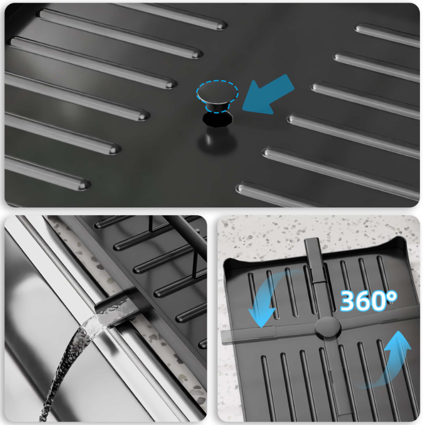 ✅ Efektywny system odprowadzania wody – tacka z odpływem skutecznie kieruje wodę do zlewu, chroniąc blat przed wilgocią i zaciekami.