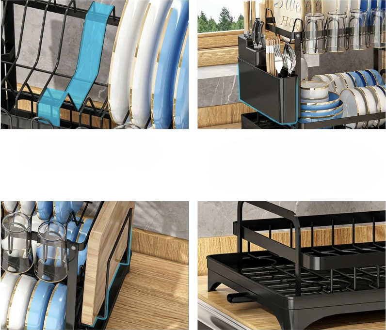 ✅ Dwupoziomowa konstrukcja – umożliwia wygodne przechowywanie większej ilości naczyń, garnków i sztućców, oszczędzając miejsce na blacie.