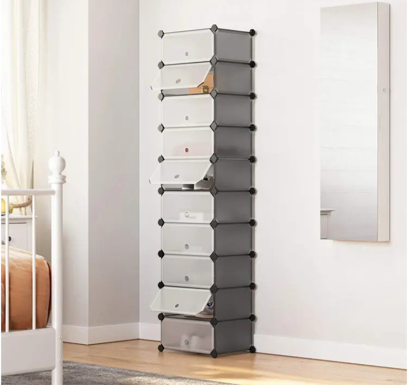 Szafka ma aż 10 poziomów jest to doskonałe rozwiązanie do przechowywania obuwia w Twoim domu. Dzięki swojej modułowej konstrukcji możesz łatwo dostosować szafkę do swoich potrzeb i przestrzeni. Wykonana z wysokiej jakości materiałów, zapewnia trwałość i niezawodność. Idealna do utrzymania porządku i organizacji w przedpokoju czy sypialni.  Modułowa szafka to praktyczny element wyposażenia Twojego wnętrza.