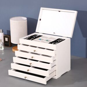 To piękne pudełko na biżuterię, ozdobione czterolistną koniczynką w stylu vintage, ma pięć wysuwanych szuflad i jedną górną półkę na pierścionki, które pozwalają na przechowywanie różnorodnej biżuterii.