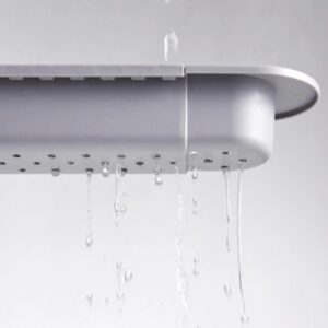 Specjalnie zaprojektowane otwory umożliwiają swobodny przepływ wody, zapobiegając gromadzeniu się wody wewnątrz półki do zlewu. Dzięki nim woda może swobodnie przepływać, a resztki jedzenia czy mydło nie zalegają wewnątrz organizera.