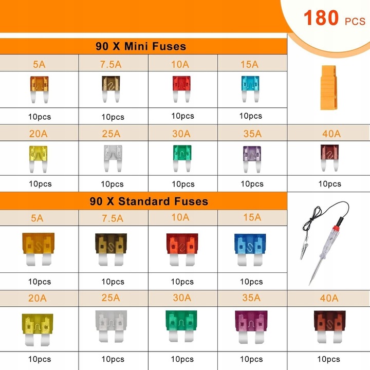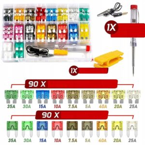 ➡️ W zestawie: 180 bezpieczników, tester obwodu, wyciągacz oraz praktyczne pudełko