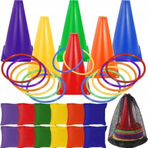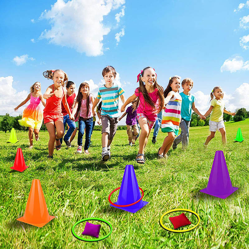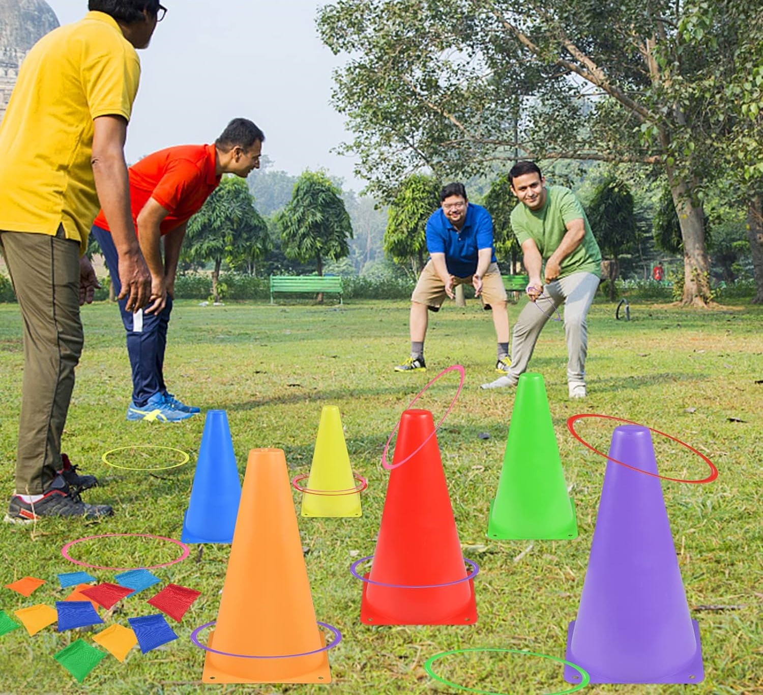 ✅ Zabawy integracyjne: Zestaw może być używany do organizacji różnych zabaw integracyjnych na świeżym powietrzu, niekoniecznie związanych bezpośrednio z grą w ringo-ball. Na przykład można wykorzystać pachołki do rzucania jako cel dla różnych gier zespołowych lub konkursów rzutowych.